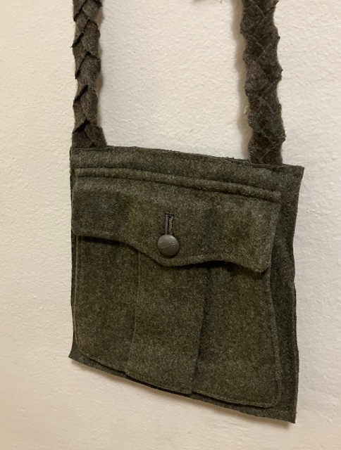 Ruotsin armeijan ylijäämävaatteita on käytetty myös villakankaisiin sarkalaukkuihin. Laukut ovat kooltaan 20 cm x 25 cm. Sarkalaukkuja löytyy kahta eri mallia. Hinta 24 e.